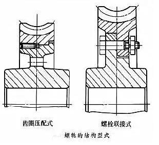 一般蜗杆与轴制成一体,称为蜗杆轴。蜗轮的结构型式可分为蜗杆传动3种形式。①整体式:用于铸铁和直径很小的青铜蜗轮。②齿圈压配式:轮毂为铸铁或铸钢,轮缘为青铜。③螺栓联接式:轮缘和轮毂采用铰制孔,用螺栓联接,这种结构装拆方便。
